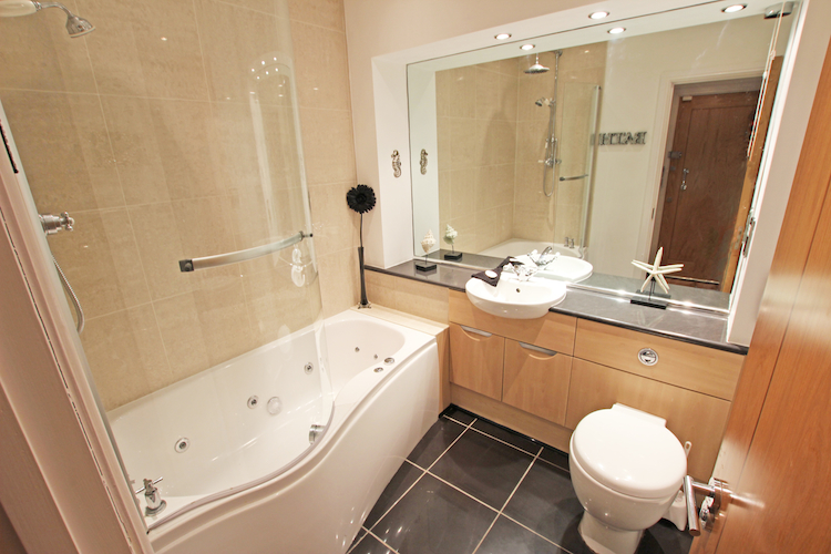 A spacious open plan lounge/diner with new modern granite kitchen which benefits from integrated Fridge/Freezer, dishwasher, washing machine etc. The lounge has a freeview 50″ Plasma TV and DVD player. The Master Bedroom has a large super king size bed and an en-suite shower room with w/c and basin with a feature mirror. The luxury main bathroom has a Jacuzzi bath with shower over and glass screen, w/c and fitted basin with large mirror. There is also a second bedroom with luxury full size bunk-beds, underfloor heating is throughout.