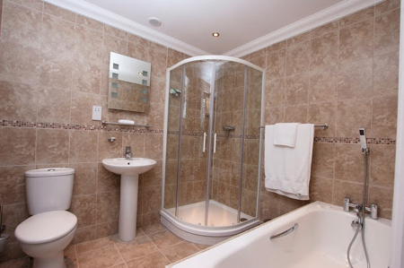 The Kitchen is very spacious and extensively equipped which continues on into the open-plan dining room and lounge with an open fire, large plasma TV and french doors out to the garden. There is a seperate day-room with a sofa bed which doubles up as a third bedroom; a WC is also on the groundfloor. Upstairs there is a twin bedroom with beds that can be connected if needed. The master bedroom has a king-sized bed with a shower and separate make-up room. There is also a large bathroom with bath, shower, WC and basin.