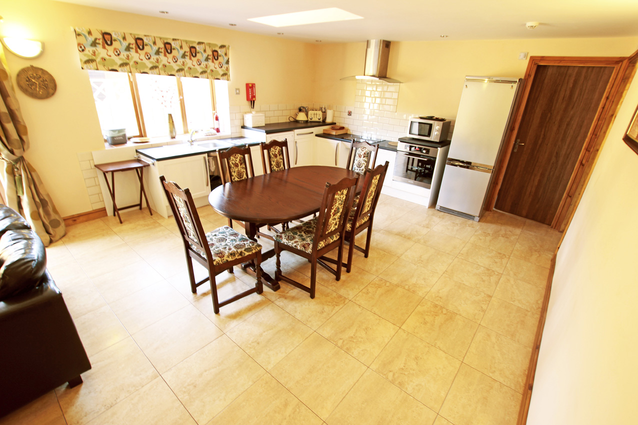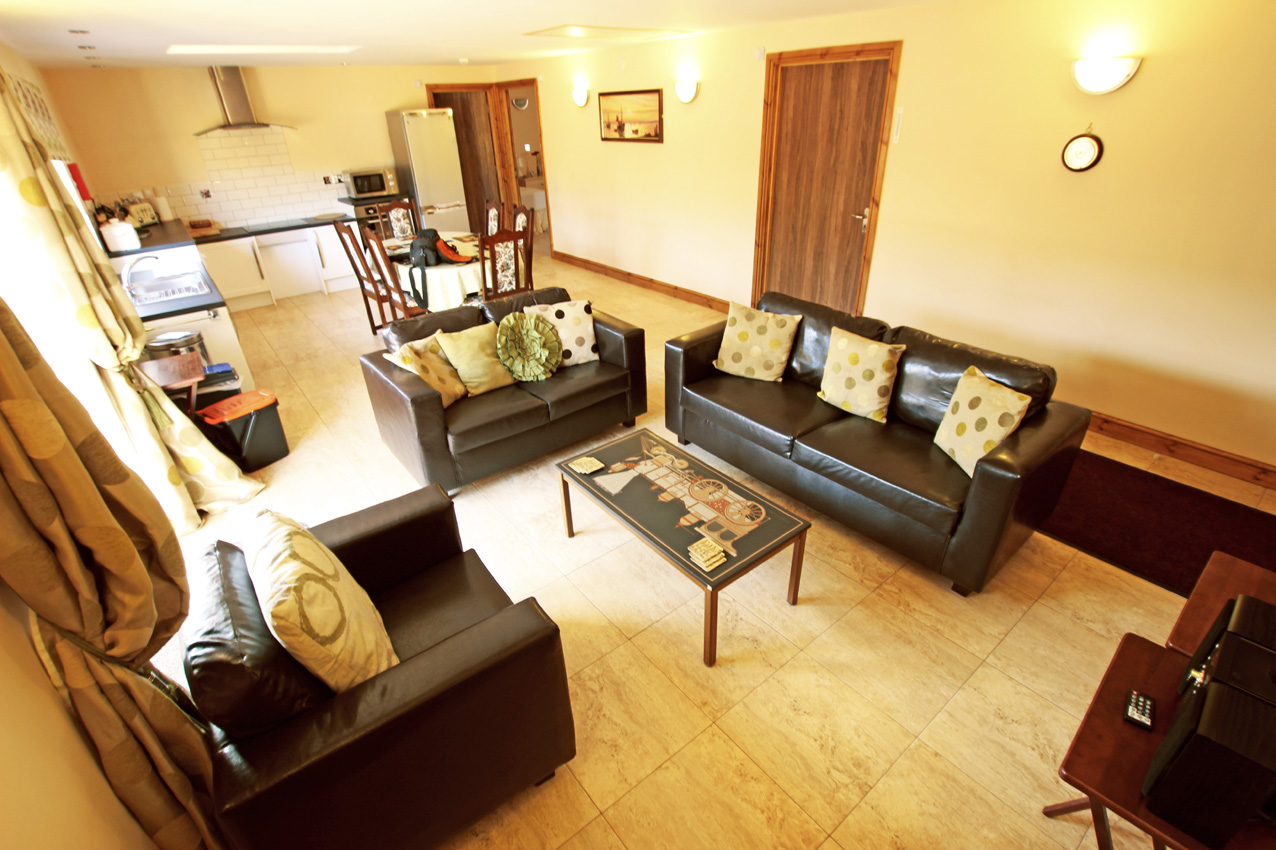 There is a very large, well equipped and well furnished, kitchen, lounge dining area with doors to the patio area. Lounge and dining seating for 6 and an extra lowered kitchen which is very handy with larger groups. TV with Freeview. Bedroom 1 – two single beds with ensuite wet room with shower, w/c and basin. Bedroom 2 – Twin beds with ensuite wet room with shower, w/c and basin. Bedroom 3 – Single bunk-beds with ensuite shower room with shower, wc and basin. A spacious entrance hall way and out door courtyard complete the accommodation.